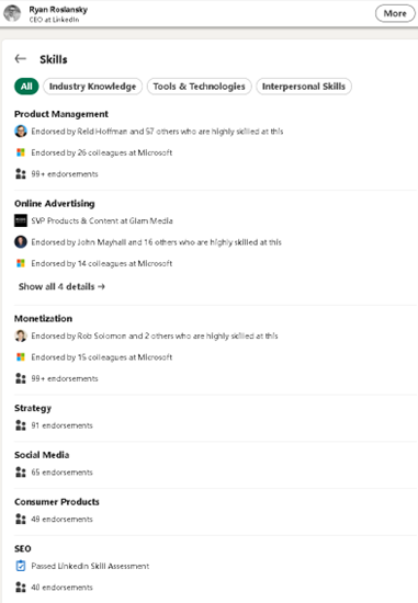 让我们先看看LinkedIn的CEO的技能栏长什么样吧!